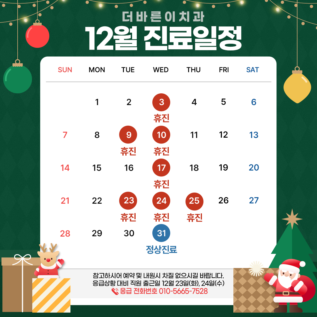 더바른이치과의원 12월 진료일정