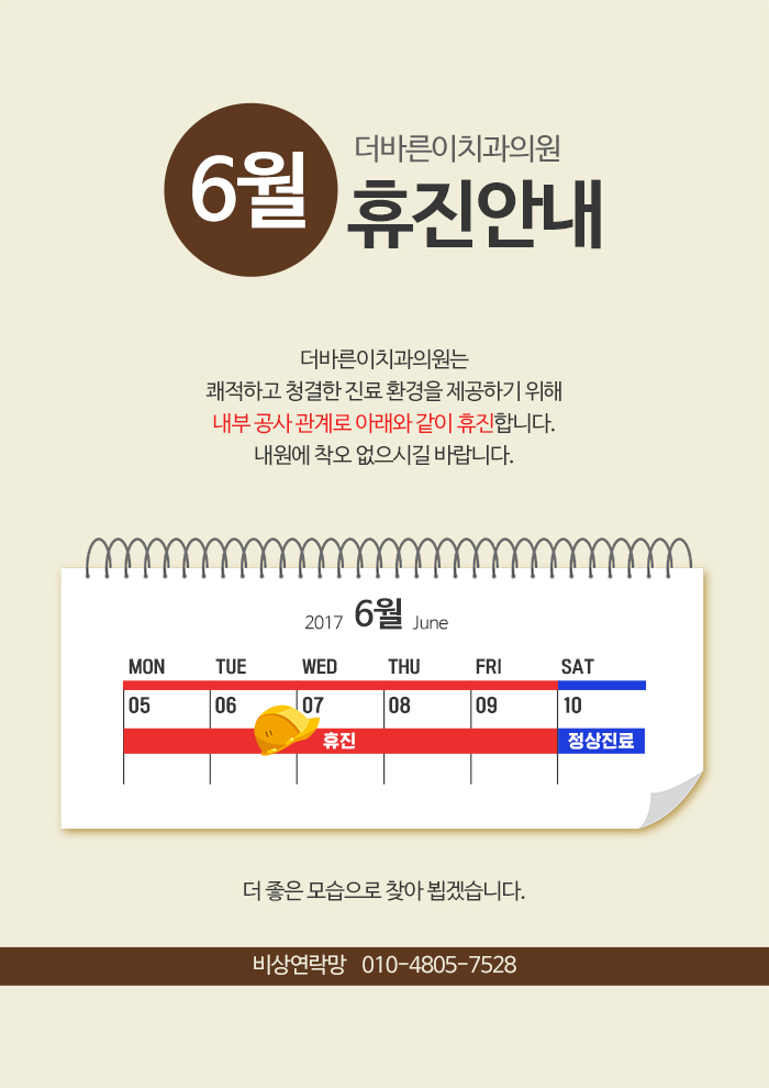 더바른이치과 6월 휴진 안내 - 치아교정, 더바른이치과