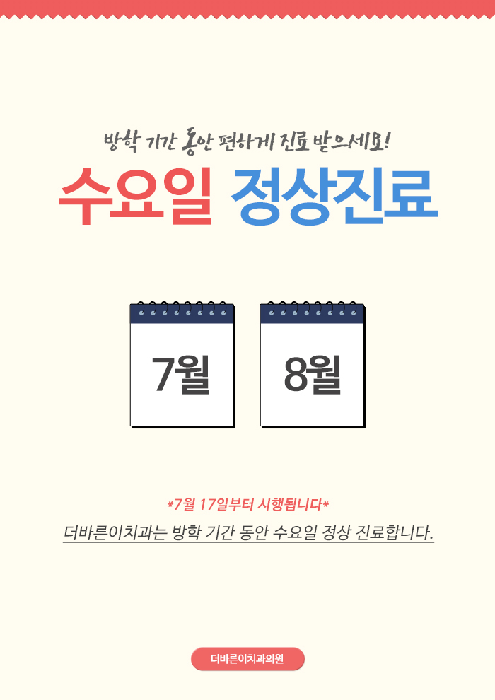 여름방학 7,8월 수요일 정상진료 안내 - 치아교정, 더바른이치과