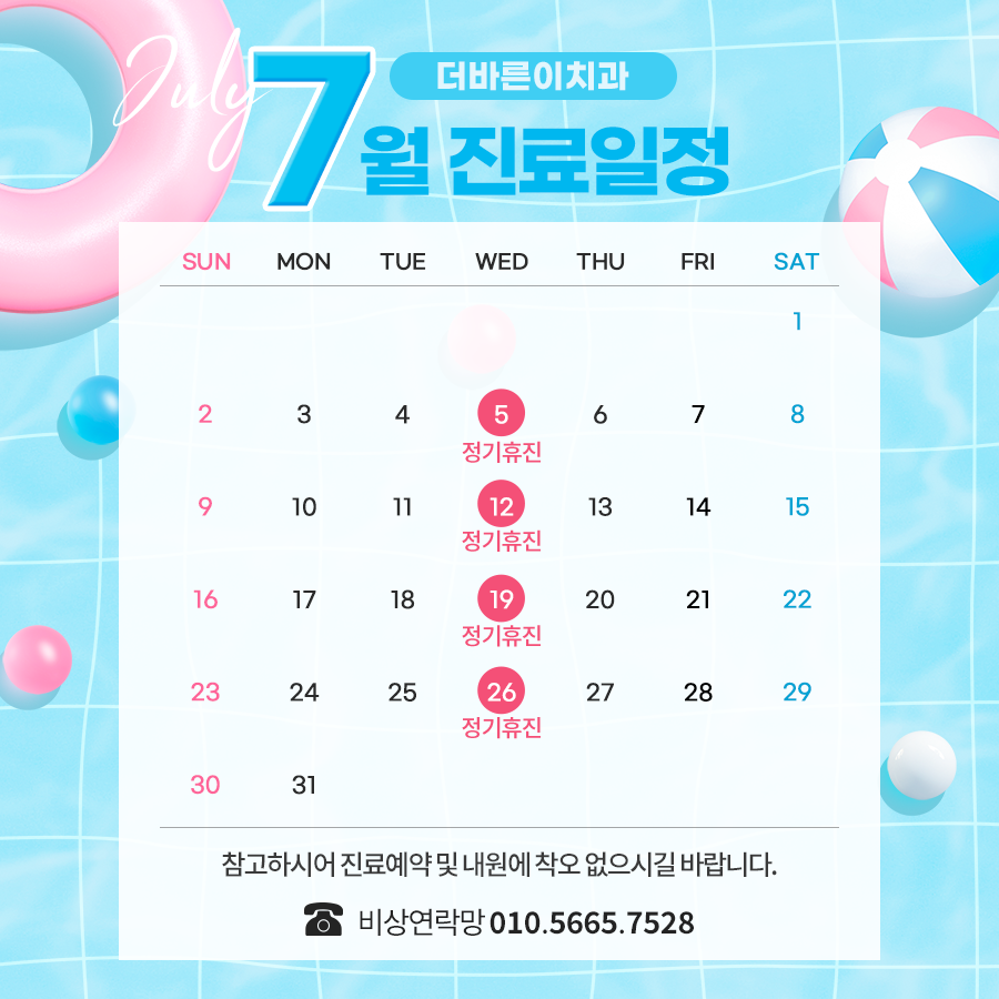 2023년 7월 휴진안내 - 치아교정, 더바른이치과