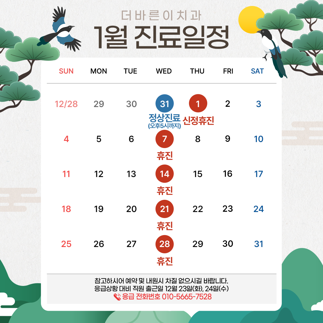 더바른이치과의원 1월 진료일정 - 치아교정, 더바른이치과