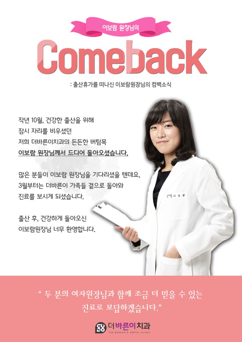이보람원장님의 출산후 컴백소식 - 치아교정, 더바른이치과