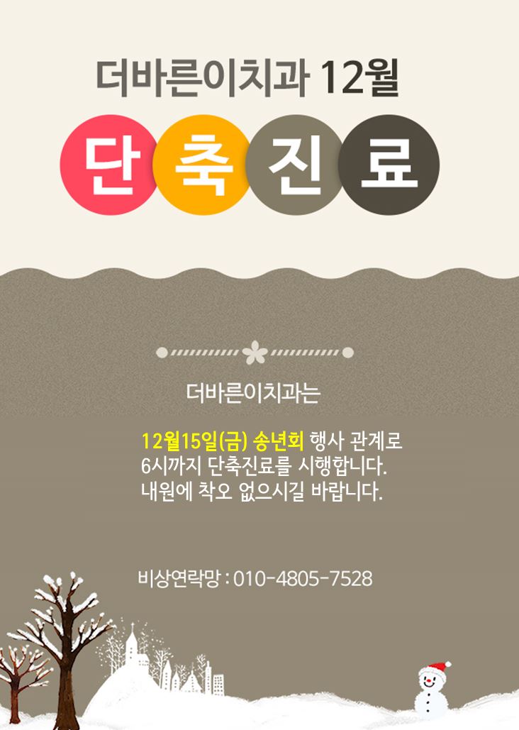 12월 15일(금) 송년회 관련하여 단축진료가 있습니다,
