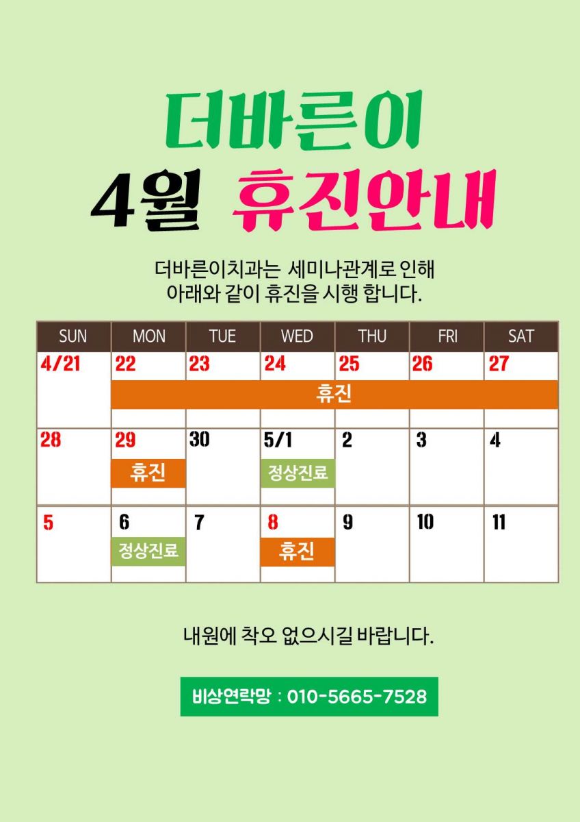 2019년4월휴진안내 - 치아교정, 더바른이치과