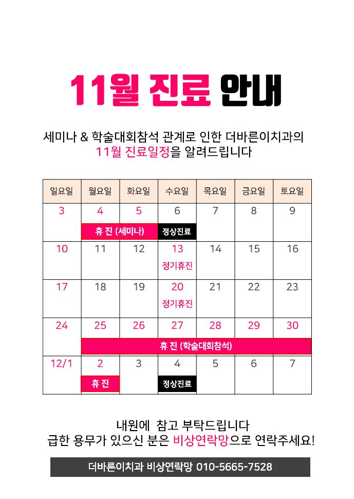 2019년11월진료일정안내 - 치아교정, 더바른이치과